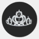 Autocollant rond en noir avec une photo d'une tiara en cristal de concours. Customisez cet objet ou achetez tel quel. Ajoutez votre nom.