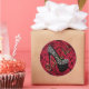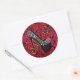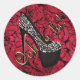 Très chic ! Cet autocollant rond a une image de fleurs rouges sur le noir et "Ooh La La !" en écriture or sur une chaussure à talon haut en noir et or clouté. Voir confettis assortis, ballotin, étiquette de faveur, sacs cadeaux et papier d'emballage. Voir l'ensemble de la collection Sticker dans les INVITATIONS | Section Stickers & Étiquettes.