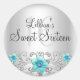 Sticker Sweet sixteen turquoise. Joli design floral argent & bijou bleu. S'il vous plaît noter : Toutes les images plates, ils n'ont pas de vrais bijoux!