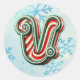 Rond Sticker "V" de Noël sucre de canne, Stripes festiv