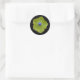 Cette jolie feuille d'autocollants ronds présente une photo d'une fleur de pétunia qui a été manipulée pour rendre le centre de la fleur brillant bleu. Le reste de la fleur est vert feuillus. L'arrière - plan est noir pour rehausser les couleurs de la fleur.