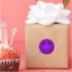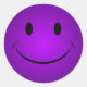 Autocollant violet avec des globes oculaires noirs et un sourire.