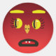 Autocollant de visage triste aux yeux jaunes. Le visage est rouge, les yeux sont jaunes, elle a deux dents avant, un nez de coeur et des sourcils jaunes.