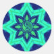 Symbole YinYang situé dans un motif de fleurs kaléidoscope entouré d'étoiles bleues