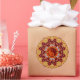 art géométrique avec un symbole ying yang dans des couleurs spirituelles riches et dorées d'orange, de bordeaux et de jaune/moutarde