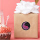 Cheerful die-cut poster of a happy, curly purple cat sleeping on a dark purple crescent. Its two-color design makes it a delightful accent for any surface, book, or item.