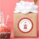 Autocollant Saint Valentin avec motif sucré et arrière - plan de polkadot rouge.