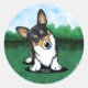 Rond Tri Curious Corgi Classic Round Sticker