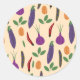 Bright and cheerful vegetable stickers featuring eggplants, chili, peas, onions, leaves, and almonds in a playful, decorative design