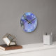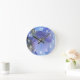 De belles hydrangées bleues perwinkle grace cette horloge murale. Ces tons pastel clairs sont agréables et calmes dans une chambre ou une chambre pour enfants. Les chiffres blancs clairs dans une police sans serif sont imprimés au-dessus de l'image de fleur.