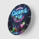 Fun and modern this neon sign themed wall clock makes a great venin. Add a name to personalize. dans this collection of neon light styled wall clocks are clocks for man cave (bar, happy, hour, beer and cocktail themes), coffee and cafe themes for the kitchen or workplace, car and garage themed for mechanics, kids clocks for boy or girls om with dance music or gamer themes. Des lots à choose from. Browse the attached collection to view them all.