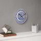 Mon design de lapin bleu et blanc classique "Dedham Blue" est maintenant disponible sur une horloge. Le design ressemble à une assiette de porcelaine.