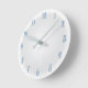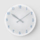 Horloge ronde en acrylique avec des numéros de décoration bleus.