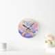 Ronde Horloge avec nom éditable Licorne sur Arc-en-Ciel