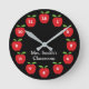 Cette horloge de classe propose des pommes rouges sur un arrière - plan noir. Chaque numéro est sur une pomme 24 heures sur 24. Personnalisez cette horloge amusante avec le nom du professeur.