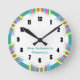 Cette horloge de classe offre un design très coloré. Un graphique de crayons colorés borde l'extérieur de l'horloge et un arrière - plan turquoise et blanc. Le texte personnalisé vous permet d'ajouter le nom de l'enseignant.