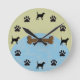 Horloge de labrador retriever, silhouettes noires de laboratoire et pattes de chien sur un arrière - plan bleu-clair et kaki avec l'os de chien au centre. Une horloge unique pour n'importe qui ce aime des laboratoires.