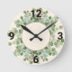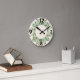 RONDE HORLOGE DE MUR EN CRÈME BOTANIQUE VERTE SAGE