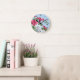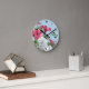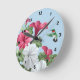 Art sur horloges avec le petit colibri parmi les pétunias et l'arrière - plan bleu.