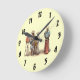 Cette horloge murale présente une adaptation d'une huile sur toile peinte par Anna Unterman dans les années 1950 à Port-au-Prince, Haïti. Les musiciens de rue jouaient de la musique fantastique sur des instruments faits maison. C'était une journée ensoleillée et les couleurs pastel étaient baignées de lumière brillante. Tous droits réservés.