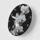 Ronde Horloge en noir et blanc avec orchidées