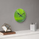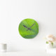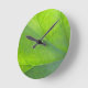 Une horloge murale à thème nature avec une image closeup d'une feuille.
