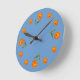 Les fleurs de Calendula sont disposées comme positions numériques sur cette horloge. Les fleurs d'oranges à 12, 3, 6 et 9 ont des tiges et des feuilles pointant vers le centre, les autres "nombres" sont légèrement plus petits, sans tiges. Customisez/Modifiez pour modifier la couleur de l'arrière - plan à votre goût.