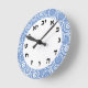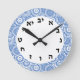 Horloge hébraïque avec des chiffres juifs en lettres hébraïques. Un beau visage d'horloge pour les fans du système de comptage Judaïque utilisé dans le judaïsme pour dire le Temps comme les Hébreux Anciens pourraient avoir avec l'aide du pari Aleph Bet / Alef. Un joli article de Judaïque avec un très vintage arrière - plan motif Moyen-Orient ancien bleu méditerranéen et blanc. Un cadeau parfait pour toute fête ou occasion juive que ce soit un bar mitzvah, bar mitzvah, passover / pesach, le Nouvel An juif (Rosh Hashanah) ou toute autre occasion pour mazel tov!