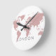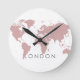 Elégante et moderne rose or muté rose pastel horloge monde avec nom de ville et marqueur d'emplacement personnalisé sur une carte du monde ENTIÈREMENT PERSONNALISABLE dans les couleurs de votre choix pour la conception de carte, arrière - plan, couleur de texte, couleur de marqueur de carte, et même la police peut être modifiée pour correspondre à votre espace de travail d'affaires international afin que vous puissiez garder un oeil sur le temps de vos clients et collègues mondiaux. Faites-en un pour chaque endroit où votre famille vit pour créer un magnifique spectacle inspiré du voyage avec des photos et des souvenirs. Contactez le graphiste Paper Grape en utilisant le conversation Zazzle pour obtenir de l'aide sur les couleurs, tout est modifiable dans l'éditeur modèle Zazzle.
