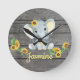 Fleurs de soleil, Jaune et Gris, Horloge murale acrylique, Arrondi (Moyen), Rustique