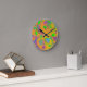 Un tas de cupcakes aux couleurs vives décorés de guimauves, d'étoiles au chocolat, de coeurs, de bonbons à la gelée. des arrosées et de la parties scintillant - prêt à manger! Horloge murale avec un design personnalisable orange, bleu, violet et vert pour vous permettre de personnaliser avec votre propre texte, photos et idées. Autres options de style disponibles. Photo originale stylisée à l'aide de techniques numériques par Jess Perry.