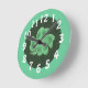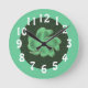 Shamrock ou trèfle (ombragé) au centre de l'horloge, avec arrière - plan centre vert foncé texturé, et arrière - plan extérieur vert. Avec des nombres blancs. L'arrière - plan externe et les nombres sont sujets à changement de couleur par vous.