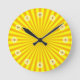 Une horloge gaie dans un motif très simple "coup de soleil" de jaune clair et foncé.