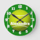 Ajoutez votre nom ou vos mots à cette horloge de tennis. Le tennis-horloge sportif et amusant est idéal pour les amateurs de sport ou les joueurs d'équipe. Doté d'un ballon de tennis jaune flou, d'un design arrière - plan de gazon vert, et d'un numéro d'horloge en blanc. Idéal pour les ados membres de l'équipe de tennis ou juste un passionné de court de singles ou de match double.