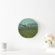 Terne en vol au-dessus de marais. L'Arrière - plan est bleu et vert flou. Les nombres 3, 6, 9 et 12 sont en gris pâle.