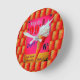 Doté d'un panneau vintage de glaces aux couleurs rose, blanc et orange, avec un cône de glace au service doux. Contre un arrière - plan à motif de cône. Une horloge amusante pour votre cuisine ou n'importe où qui vous convient. Vous pouvez changer les couleurs de la main.