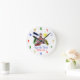 Une horloge pour les enseignants avec un crayon dessinant l'illustration thématique d'une école. Avec un jeu de couleurs principal.