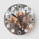 Horloge ronde photo animal de compagnie. Cette conception simple comporte des nombres en noir sur blanc, les nombres 12, 3, 6 et 9 sont des empreintes de pattes noirs sur blanc. Utilisez les outils de personnalisation de Zazzle pour ajouter votre propre photo d'animal de compagnie. Nous vous invitations à visiter notre magasin Zazzle pour des produits assortis et plus encore.