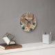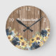 Ronde Sunflowers Rustic Wood Nom de famille Horloge de c
