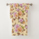 Une Belle Serviette De Bain Ensemble De Roses Roses Rose et Jaune Sur Un Arrière - plan Jaune