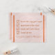 Personnalisez vos propres invitations drôles "Will You Be My Groomsman" (Veux-tu être mon garçon d'honneur ?) pour qu'elles correspondent à votre collection de mariage aquarelle rose blush. Conçues avec mon style d'arrière-plan en faux aquarelle en rose et des bordures d'accent en cuivre simulé, le devant est une liste de contrôle drôle tandis que le verso proclame que le destinataire a été qualifié pour être un garçon d'honneur. Ajoutez un nom personnalisé à la mention FÉLICITATIONS sur le devant et au verso, personnalisez le titre du cortège de mariage et la ligne de signature du nom du marié. Cette carte plate GROOMSMAN drôle est facile à personnaliser, elle convient donc également aux invitations "Veux-tu être ma demoiselle d'honneur". Veuillez parcourir ma boutique pour voir tous les articles de mariage assortis au monogram
