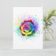 Grand rose fleuri avec pétales arc-en-ciel sur arrière - plan blanc, peint sur des éclaboussures de peinture colorée et lumineuse. 3d