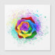 Grand rose fleuri avec pétales arc-en-ciel sur arrière - plan blanc, peint sur des éclaboussures de peinture colorée et lumineuse. 3d