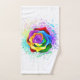 Grand rose fleuri avec pétales arc-en-ciel sur arrière - plan blanc, peint sur des éclaboussures de peinture colorée et lumineuse. 3d