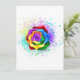 Grand rose fleuri avec pétales arc-en-ciel sur arrière - plan blanc, peint sur des éclaboussures de peinture colorée et lumineuse. 3d