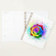 Grand rose fleuri avec pétales arc-en-ciel sur arrière - plan blanc, peint sur des éclaboussures de peinture colorée et lumineuse. 3d