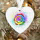 Grand rose fleuri avec pétales arc-en-ciel sur arrière - plan blanc, peint sur des éclaboussures de peinture colorée et lumineuse. 3d