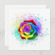 Grand rose fleuri avec pétales arc-en-ciel sur arrière - plan blanc, peint sur des éclaboussures de peinture colorée et lumineuse. 3d
