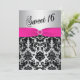 Ces rose indien élégante et moderne, argent, et invitation noire de damassé est customisée ici pour une fête d'anniversaire de sweet sixteen, mais elle peut être employée pour beaucoup d'autres célébrations ou tout autre événement ayant besoin d'une invitation chique. Le **** NOTENT SVP que le ruban et les bijoux sont des images IMPRIMÉES, et ne sont pas vrai. Si vous avez besoin de n'importe quels articles assortis, ou si vous le voudriez dans une autre combinaison de couleurs, ou composé pour un autre événement, email niteowlstudio@gmail.com avec votre demande.