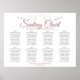 Faites de votre réception de mariage une belle avec ce tableau de sièges. Il présente un design simple mais élégant avec un rose poussiéreux ou du texte rose et gris mauve sur un arrière - plan blanc avec une bordure florale en faux feuille d'argent. Ce graphique montre les affectations de table afin que vos invités aient un temps facile à trouver la bonne table.